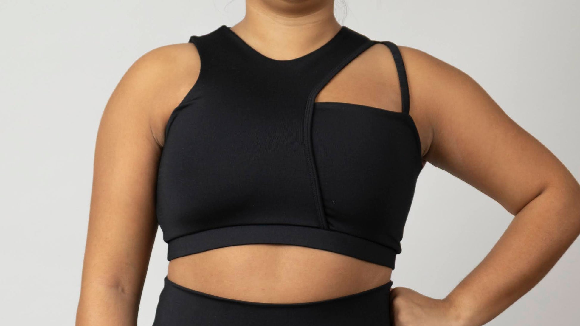 El Top Venezia combina soporte, estructura y elegancia en una silueta moderna inspirada en la arquitectura de la ciudad de los canales. Su diseño con doble tirante asimétrico y escote geométrico ofrece un balance perfecto entre estilo y funcionalidad.